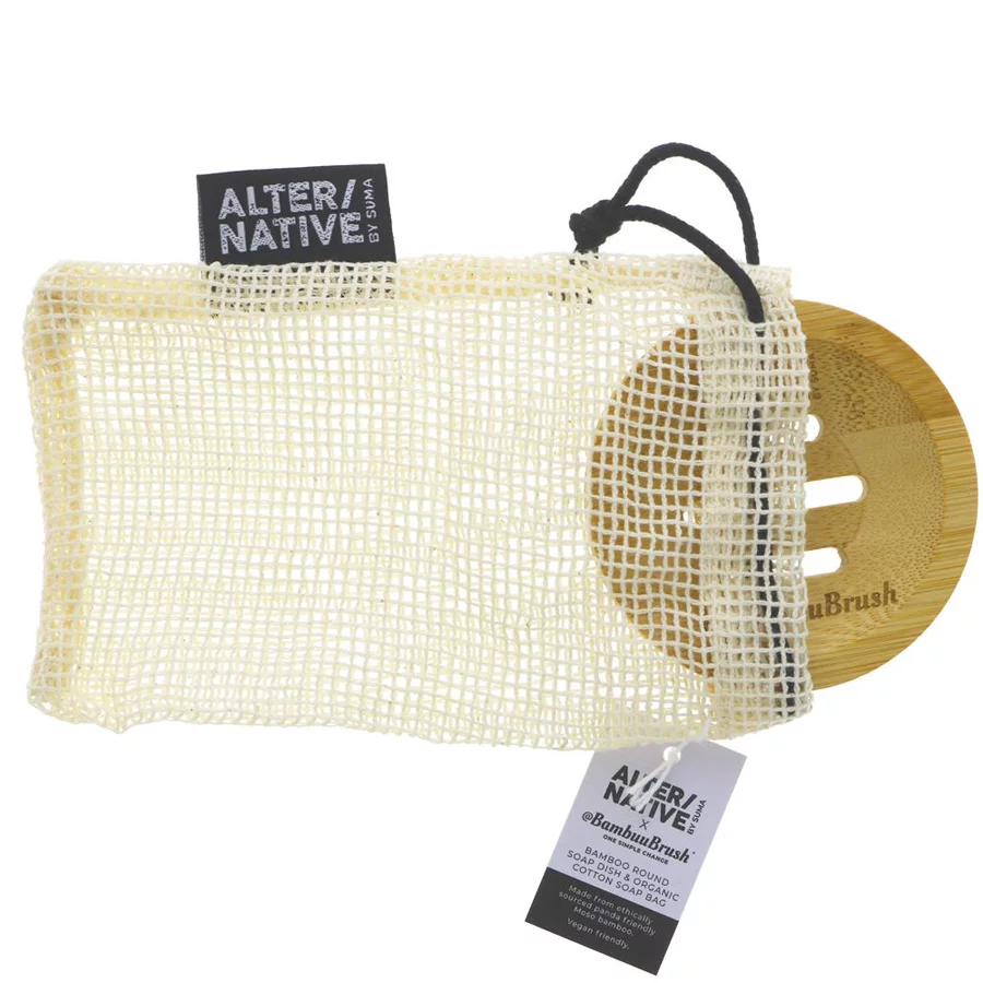 The soap dish comes in an organic cotton mesh soap bag with a drawstring fastening so you can hang up your soap bars in the shower or bathroom. The soap bag can also be used as a natural exfoliator for your skin.
