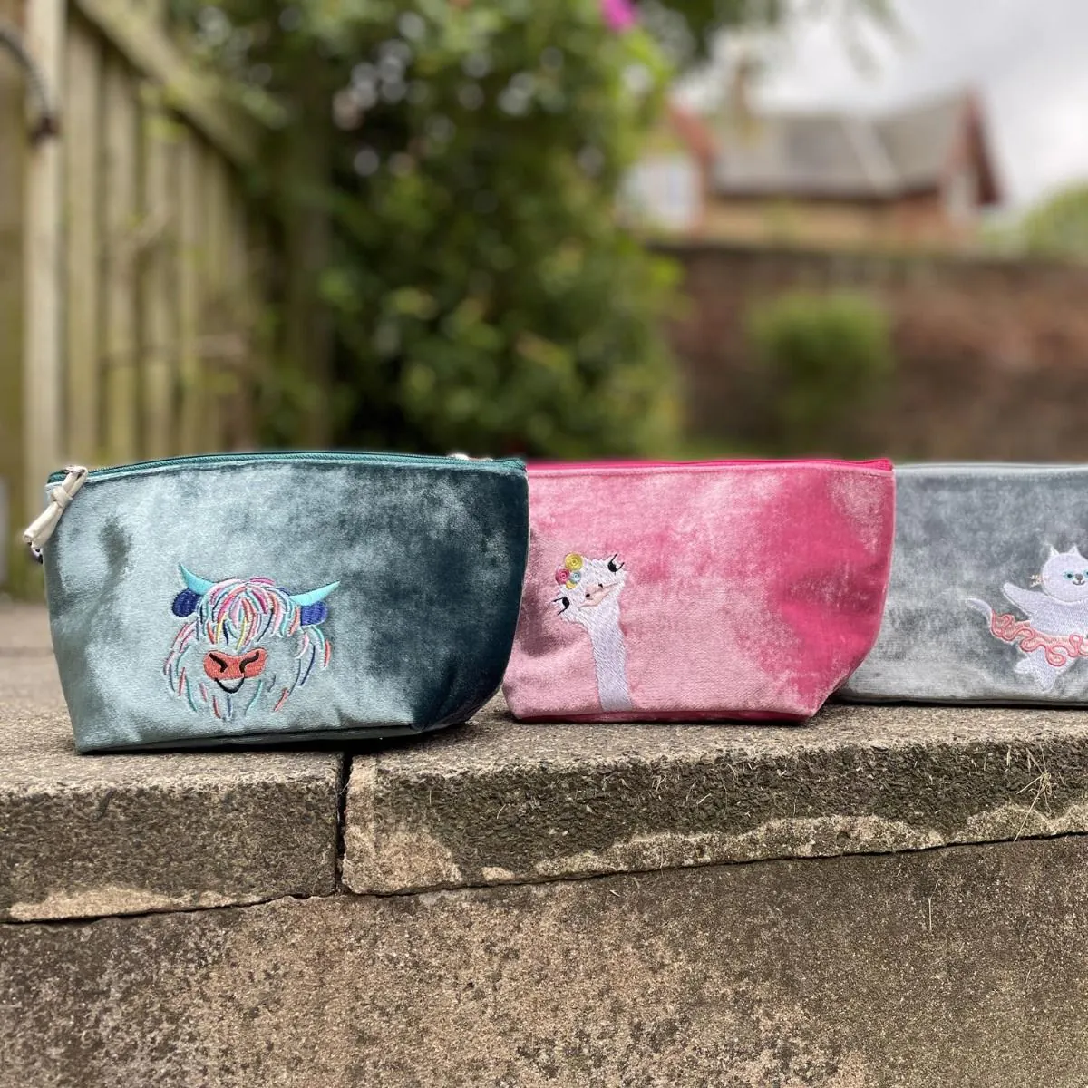 These Earth Squared Silk Velvet Make Up Bags with fun appliqué detail are great for all sorts including your make up or as toiletries . They are lined on the inside with soft waterproof fabric and produced from gorgeous silk velvet.