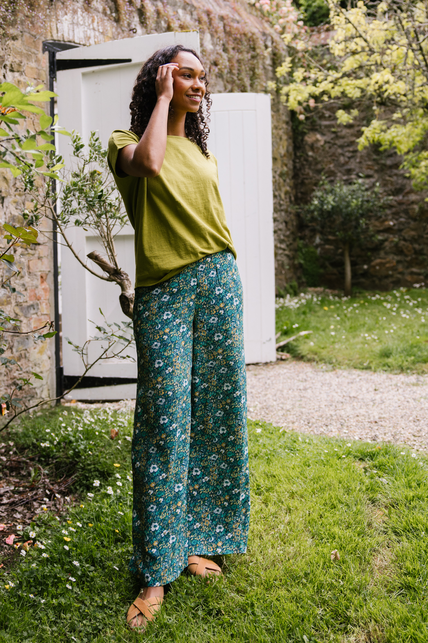 Nomads Wide Leg Trousers in attractive Neptune print. Made in a viscose crepe fabric giving them a fabulous light weight drape